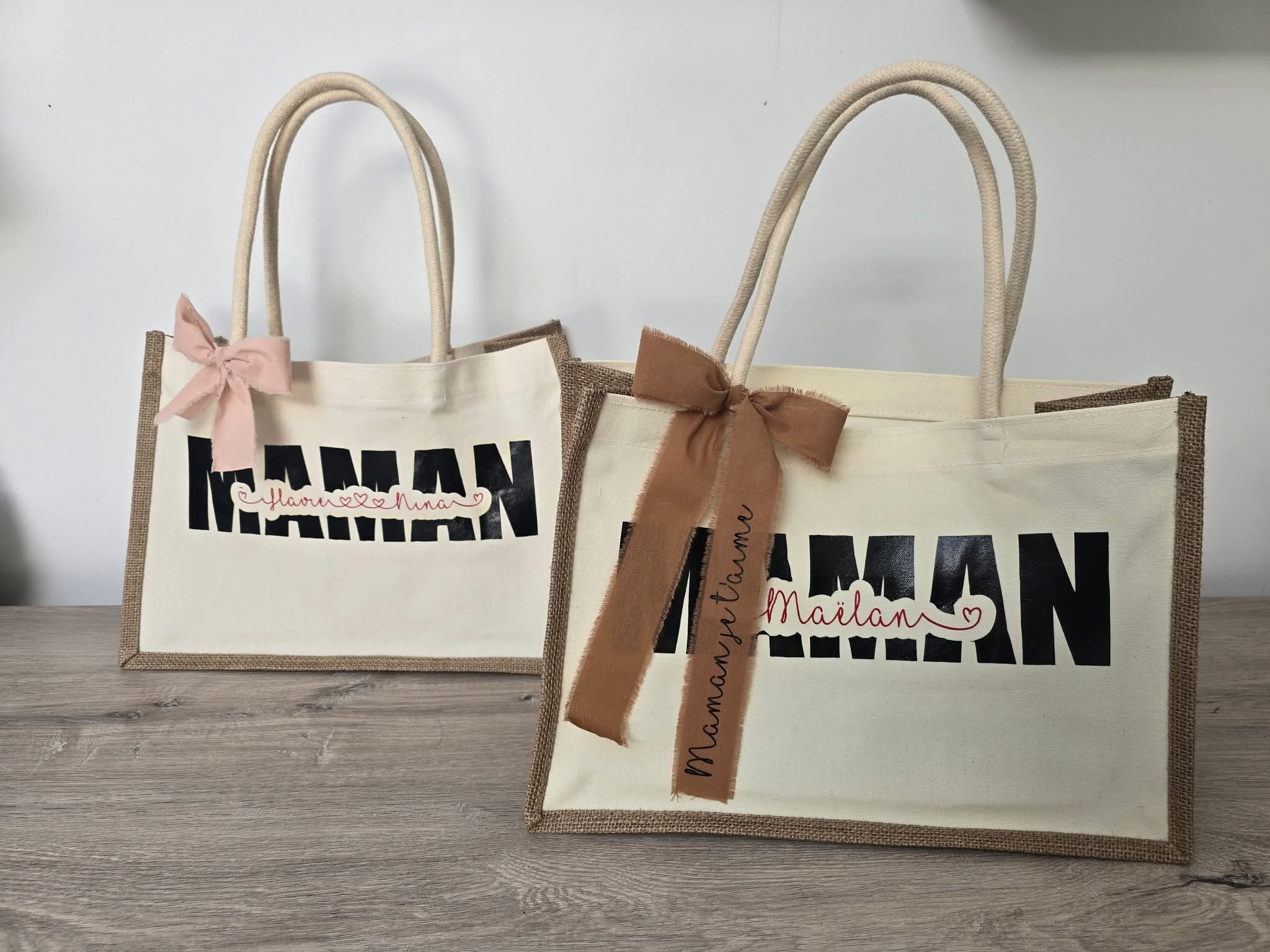 Totebags, sacs à dos, sacs en toile avec le texte, prénom ou logo de votre choix.